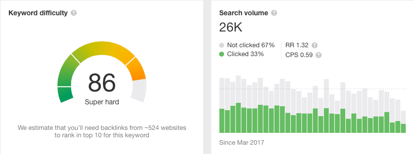 So, using a tool like Ahrefs to search keywords and find their difficulty rating (i.e. how many backlinks your site will need to rank in first position for the keyword) and monthly search volume (i.e. how many people per month search the term in question) should be your first step in accepting pitch proposals.