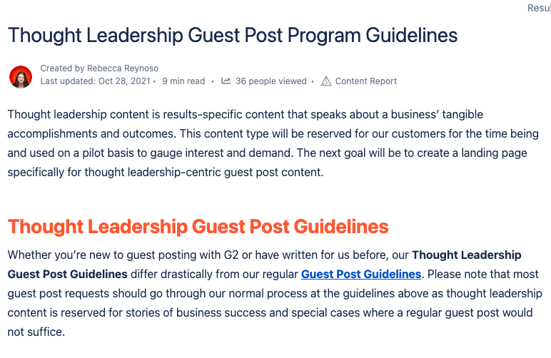 In spring of 2021, I developed Thought Leadership Guest Post guidelines, which were based on the standard guest post program (seen left).